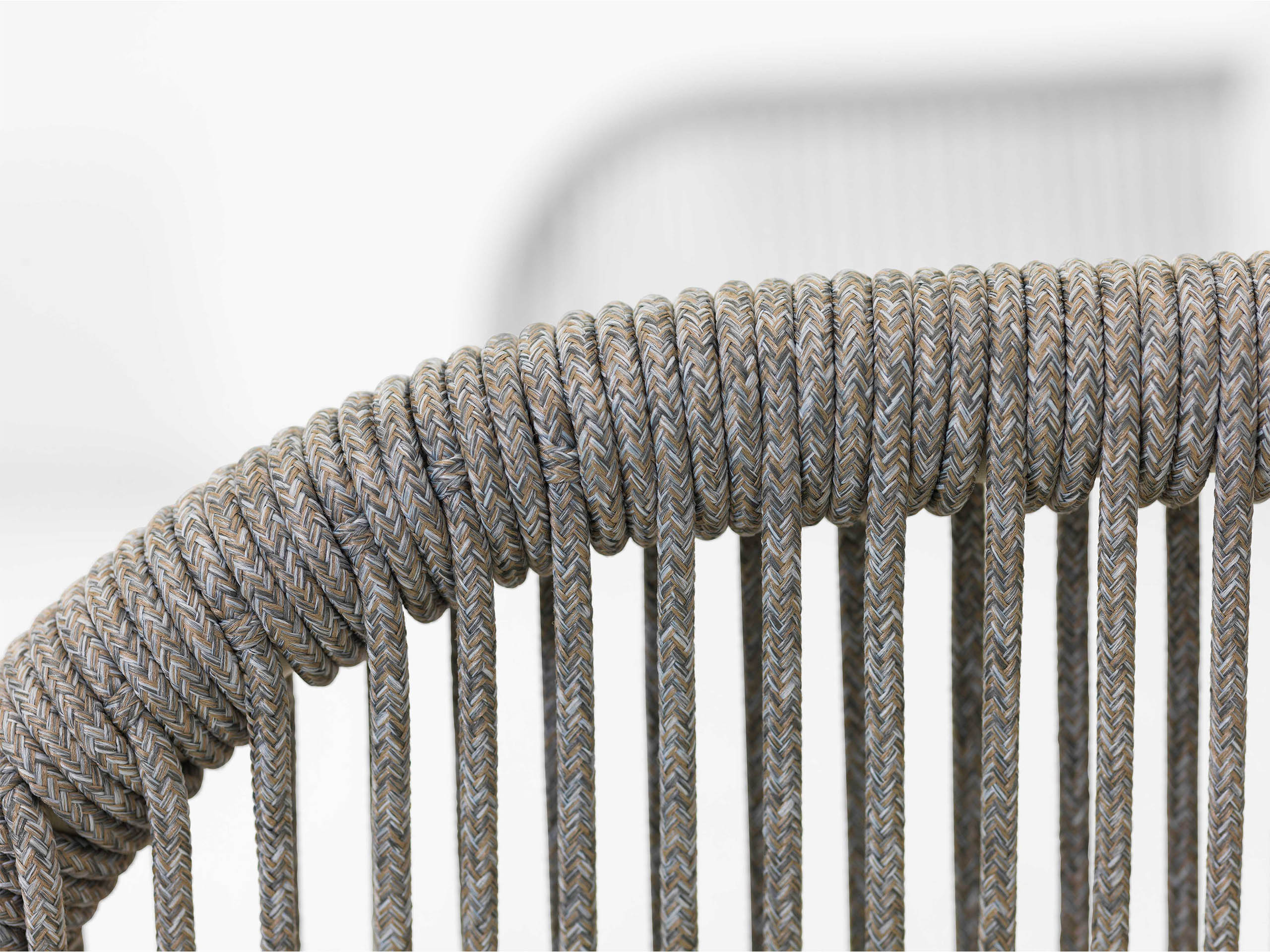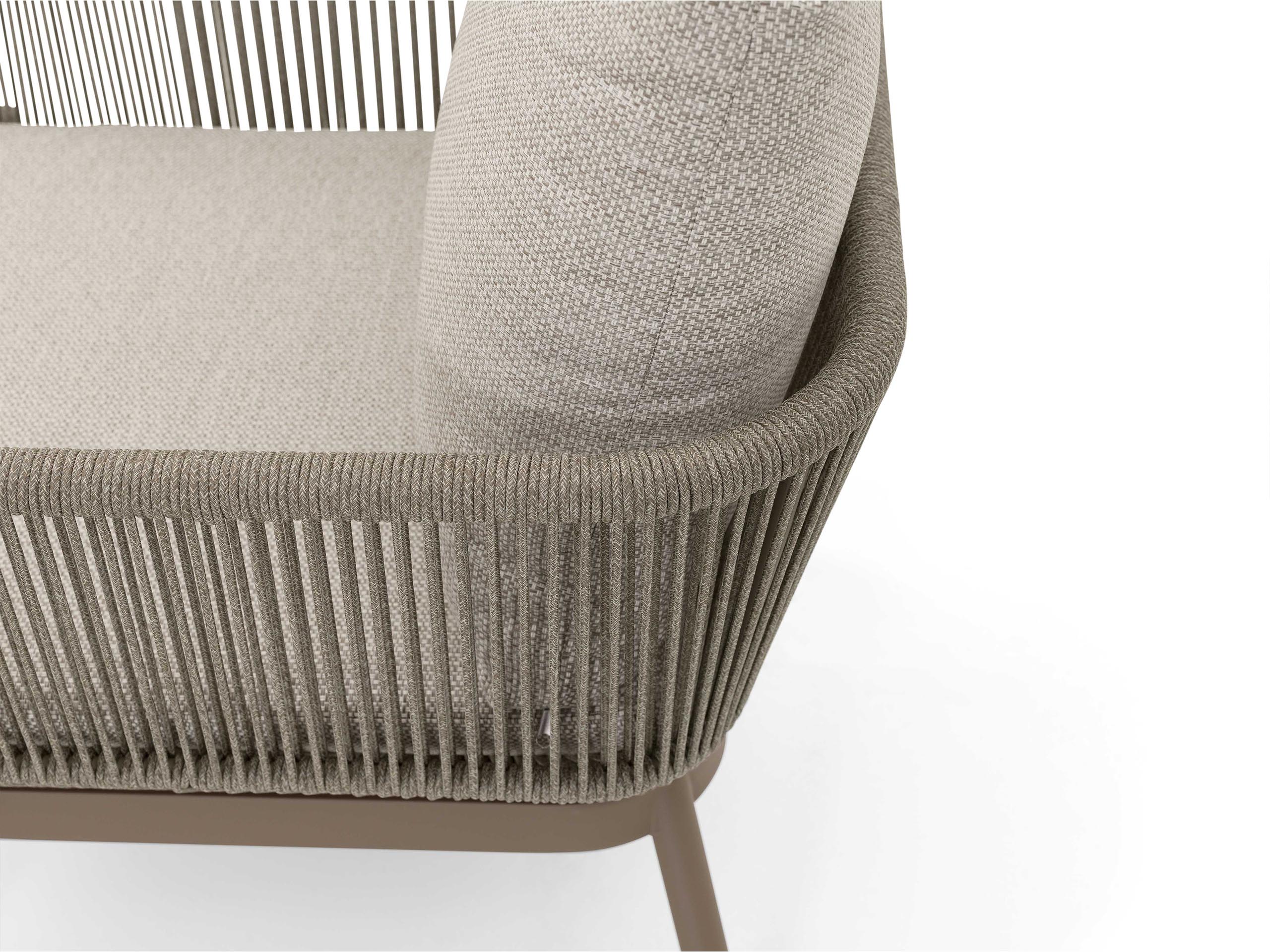 Tenký lanový výplet je pružne napnutý na ráme, čo v kombinácii s mäkkými bledošedými poduškami vytvára dokonalé „hniezdo“ na popoludňajšiu kávu.