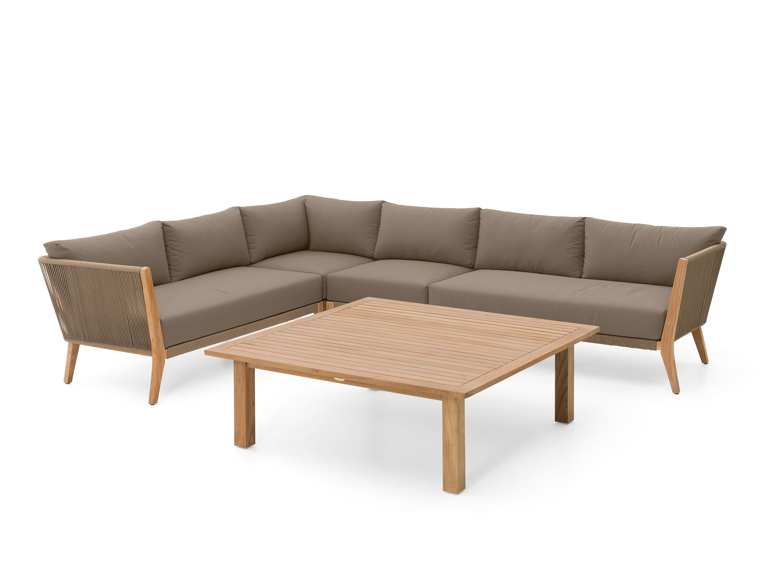Pochopte význam slova relax. Set Greece v béžovom prevedení prináša vzdušný dizajn lanového výpletu v kombinácii s teakovým drevom. Dokonalá harmónia prírodných materiálov a prémiového čalúnenia pre vašu terasu.