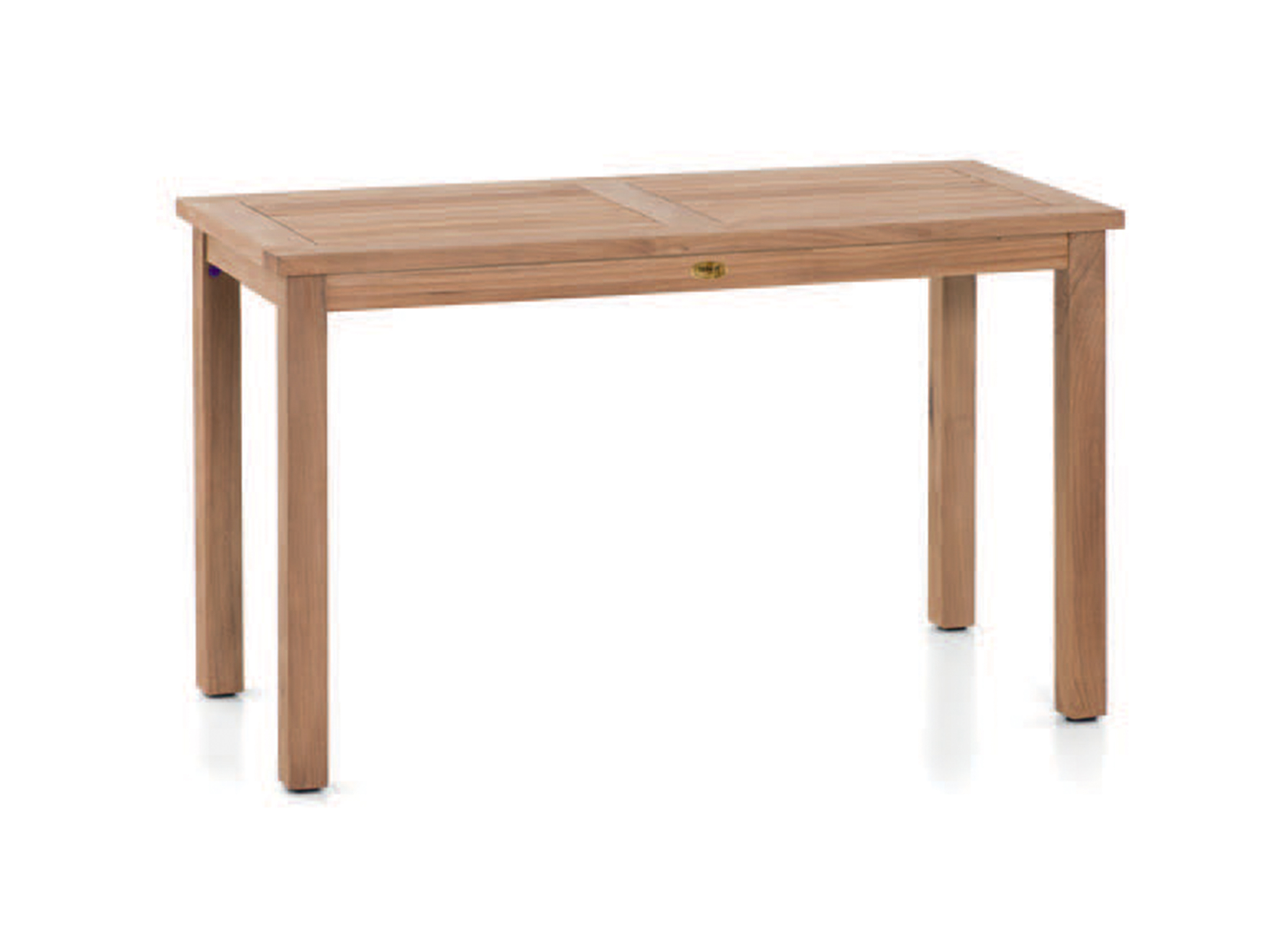 Konštrukcia: Doska je vizuálne rozdelená na dve polovice stredovým teakovým predelom. Rovnaké masívne dosky lemujú aj krátke okraje stola.